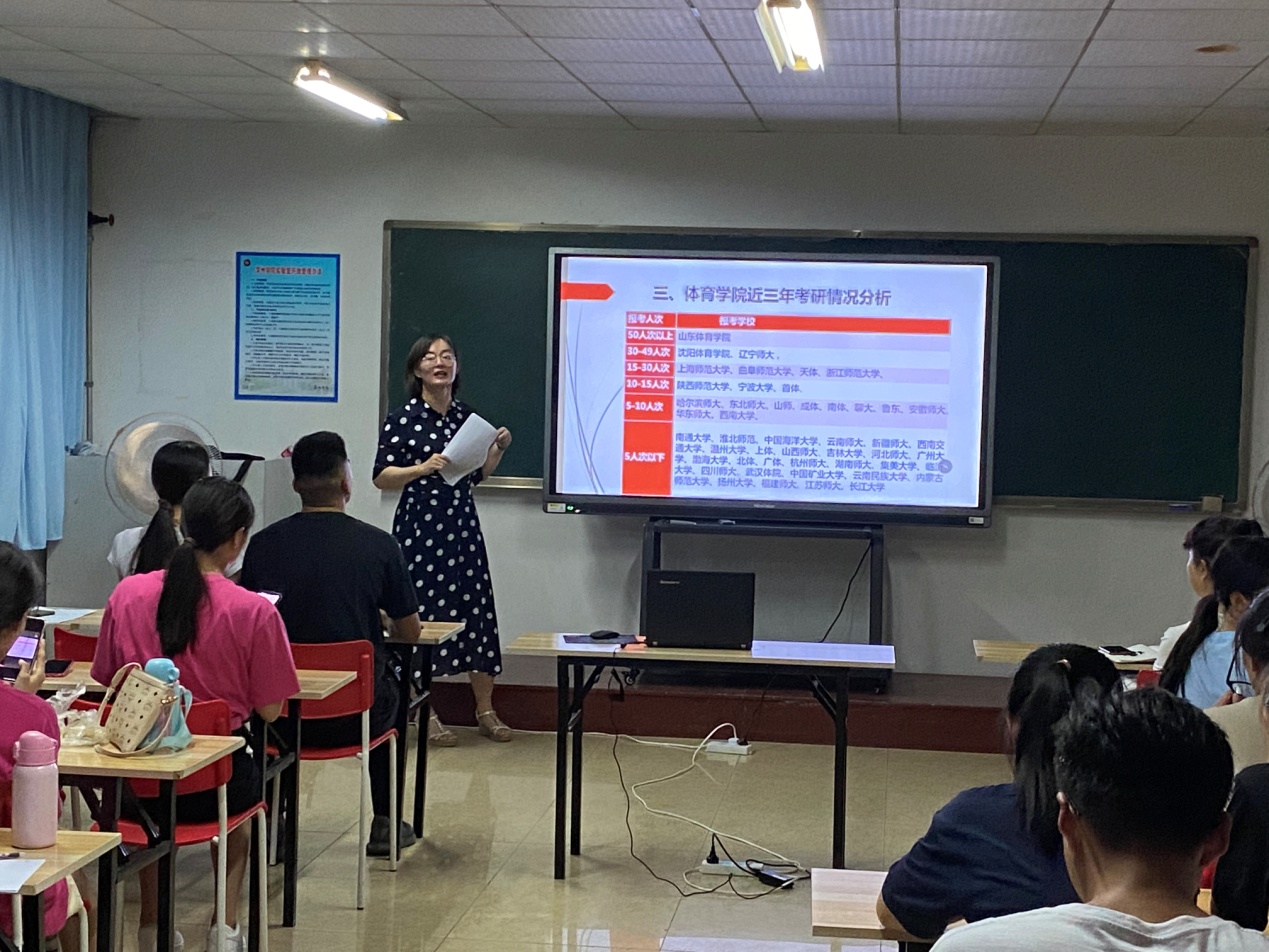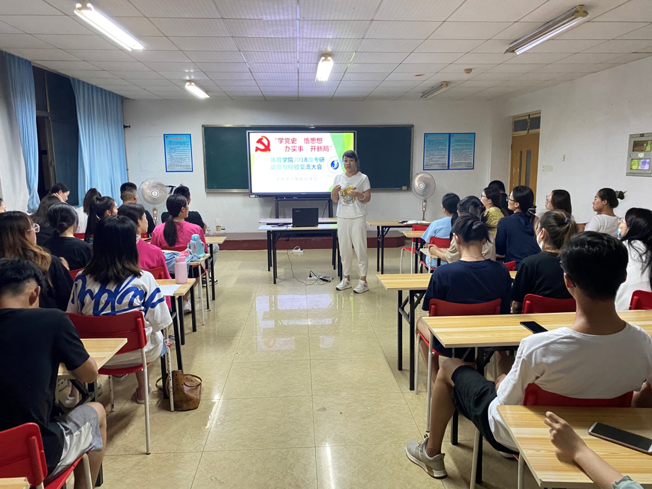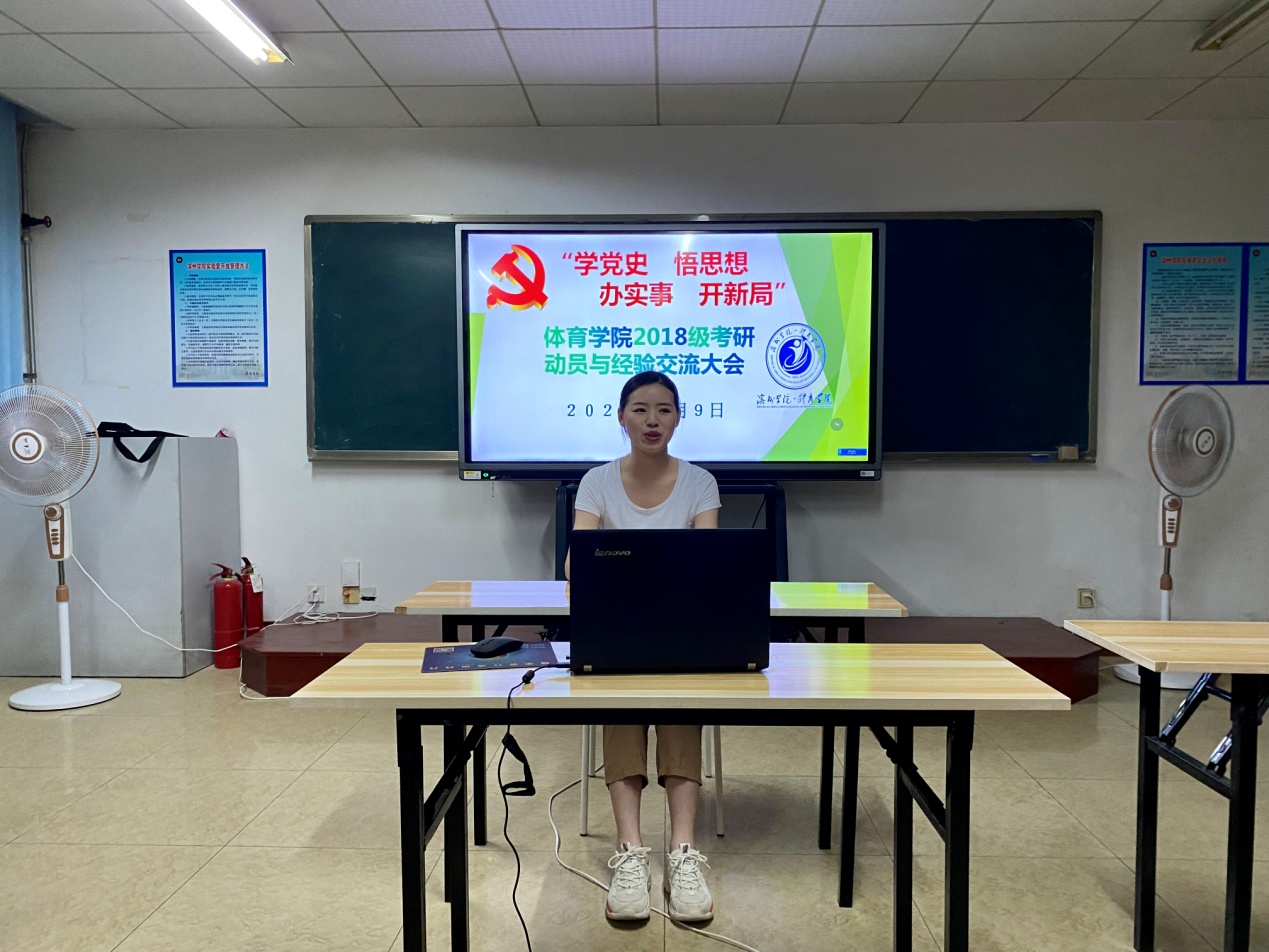 2017级考研学生代表结合自己的考研经历在备考、报考、调剂等方面分享了自己的亲身体验和考研。考入首都申慱sunbet官网的张玉强调要根据不同阶段来进行不同科目的学习,做好每日的时间安排并确立好自己的目标。陕西师范大学准研究生谭媛媛热心提出课本是基础,要结合历年的体育热点来拓展答题,并提议学习要适当放松,寻找适合自己的学习方法。考入沈阳申慱sunbet官网的王嘉暄,在交流中分享了自己的背题方法和学习建议,希望大家把握住学习机会,努力登上更高学府。南宁师范大学录取的高靖懿主要分享了调剂相关问题,他提醒同学们英语学习的重要性。最后,申慱sunbet官网副院长姚健鼓励大家要有坚定的信念,并提前预祝同学们考研成功。
