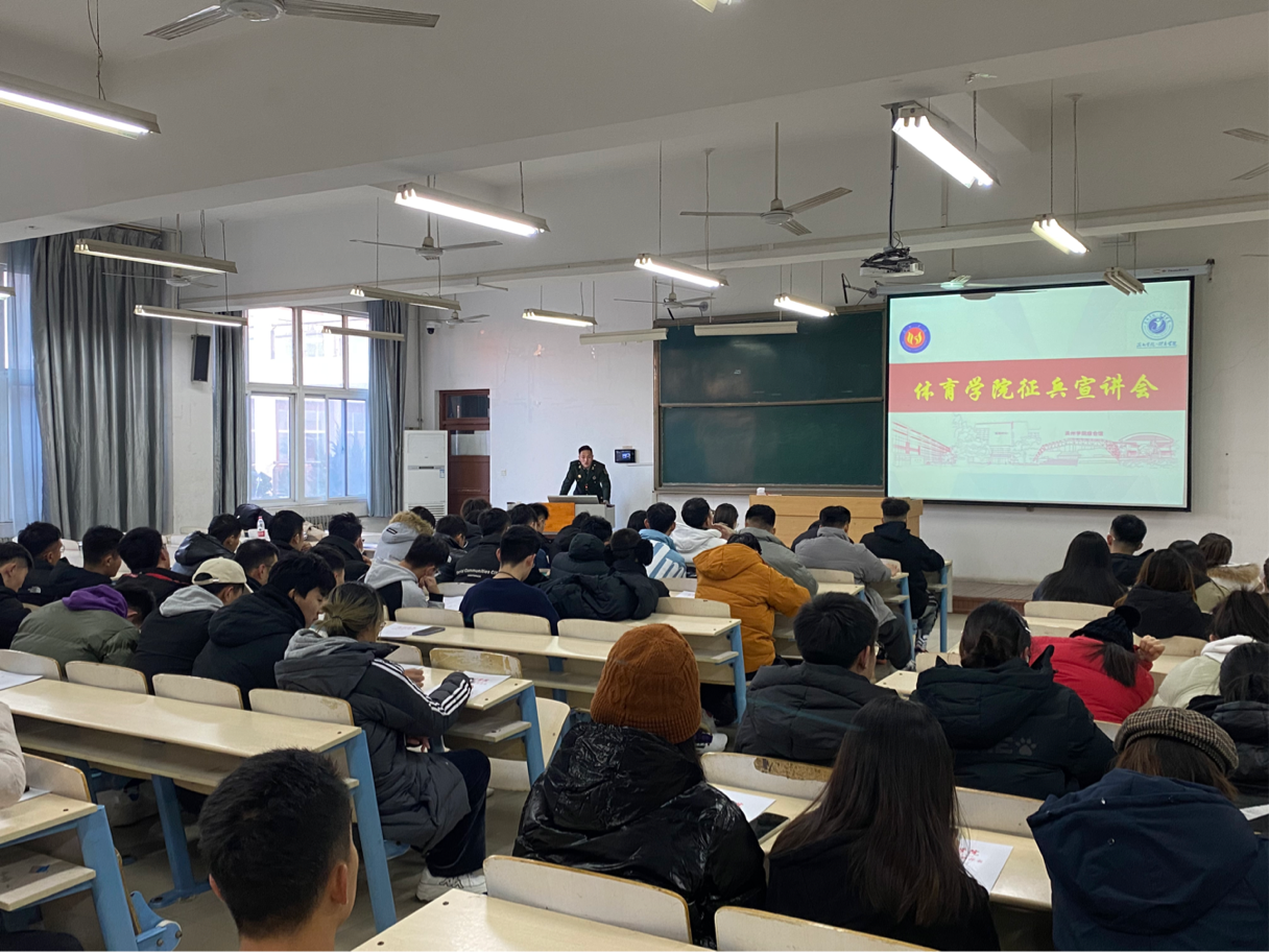 为推进大学生应征入伍工作,帮助学生了解掌握征兵政策流程,鼓励学生积极应征。申慱sunbet官网于12月27日在工科楼2-112召开毕业生征兵宣讲活动,活动由程晓珊老师主持召开,退伍复学曹云坤同学演讲,申慱sunbet官网18级全体同学参加。