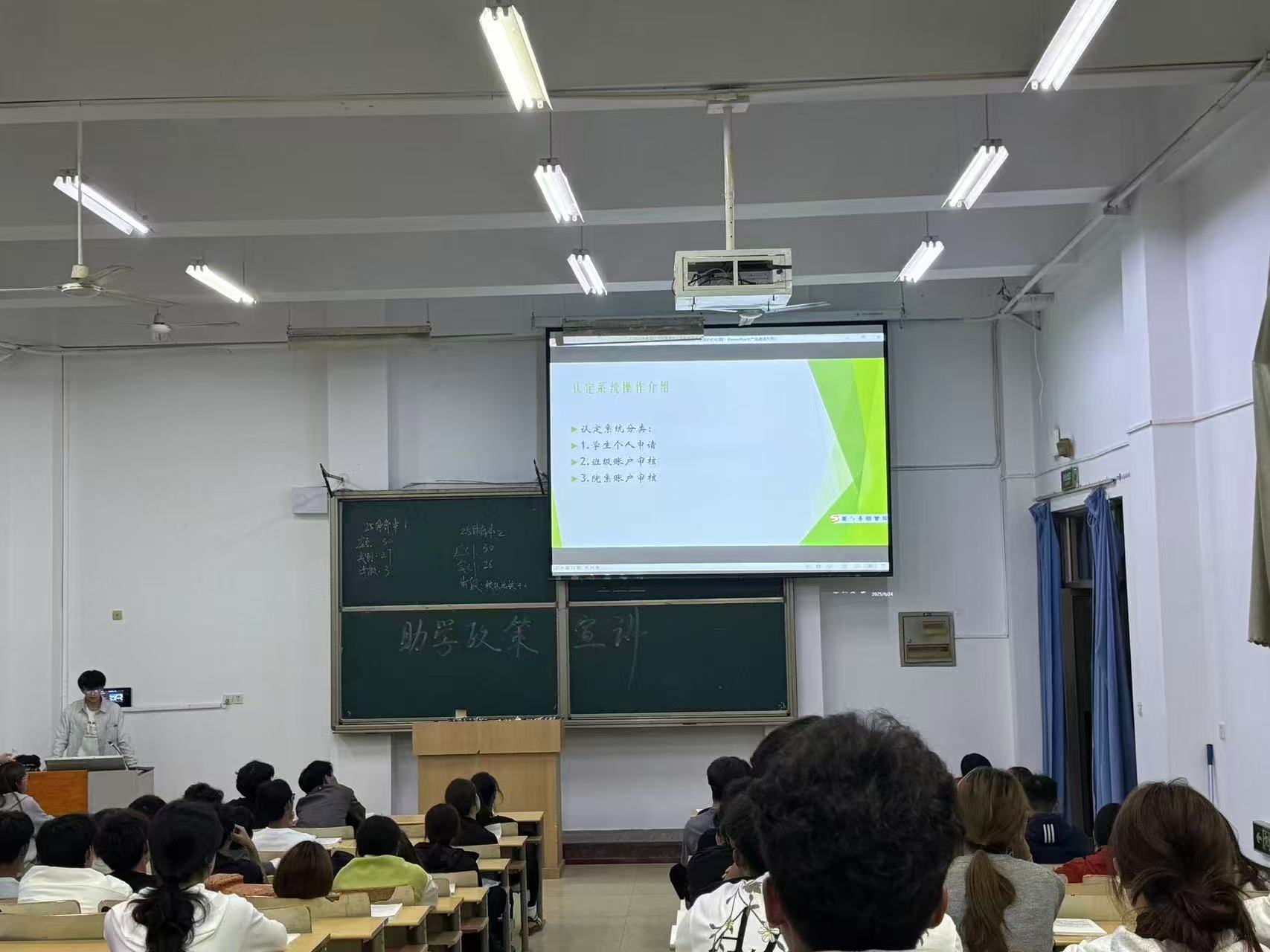 宣讲会上,陈国旭同学围绕“什么是资助政策”“谁能享受资助”“如何申请资助”三大核心问题,系统梳理了国家和学校的资助体系。他重点解读了家庭经济困难学生的认定标准,详细介绍了三个困难等级的评定细则与划分依据,并具体说明了各资助等级的申请条件及金额标准。针对“特殊困难学生”的认定与资助政策,陈国旭也做了深入讲解,明确列举了可作为认定依据的几种情况,强调坚持“精准识别、应助尽助”的原则。最后,他还就助学贷款的线上申请流程、还款期限及利息优惠政策作了说明,解答了同学们普遍关心的贷款疑问。