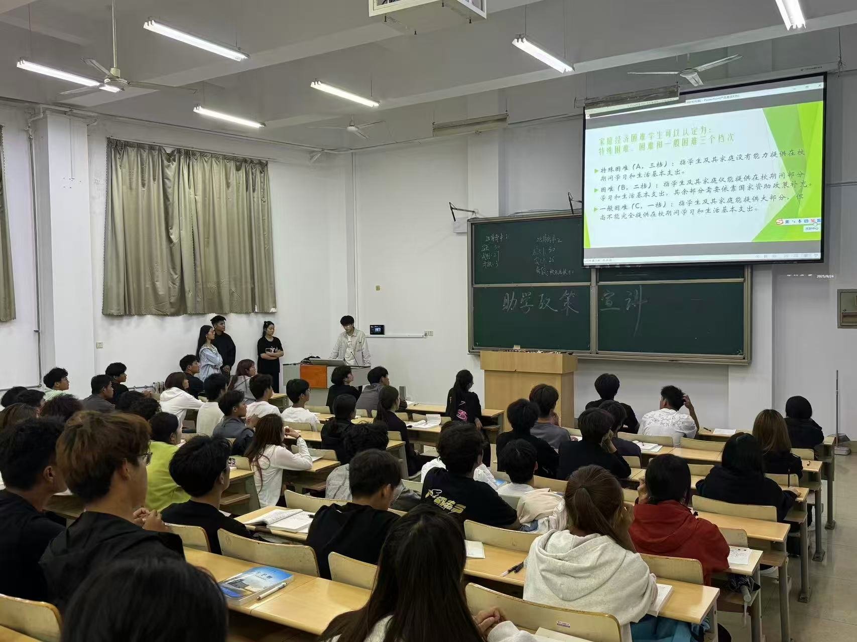 为切实落实国家资助政策,帮助2025级新生全面了解奖助体系、缓解求学顾虑,营造积极进取、奋发向上的学习氛围,申慱sunbet官网于9月24日晚在第五教学楼307教室举办了资助政策专题宣讲会。本次宣讲会由学院助学维权部部长陈国旭主持,部门全体干事及2025级全体学生参加。