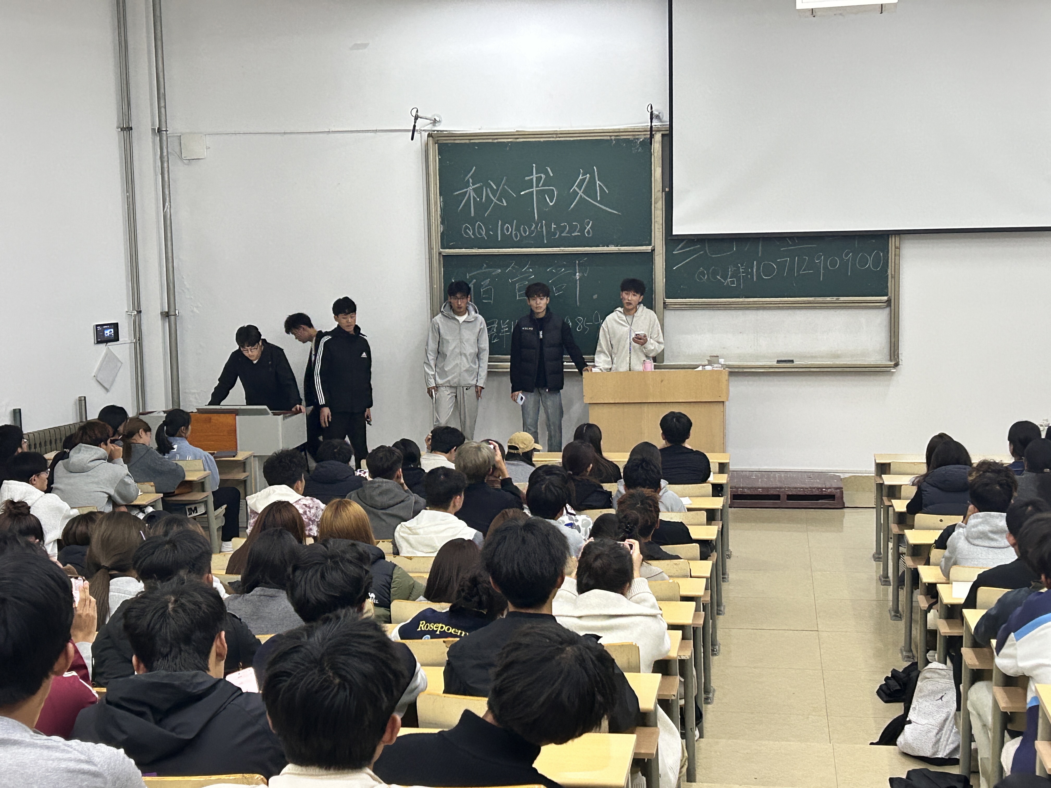 当晚,107教室座无虚席,现场气氛热烈。活动伊始,学生会主席团成员对到场新生表示诚挚欢迎,并简要介绍了学生会的组织性质、工作宗旨以及在学院学生工作中的重要作用,强调学生会不仅是服务同学的窗口,更是提升综合素质、实现自我成长的实践平台。